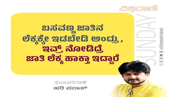 - ಹೋ, ಹಂಗಾ, ಸಾರಿ, ನಾನ್ ಏನ್ ಹೇಳೋಕೆ ಹೊರಟೆ ಅಂದ್ರೆ ಬಸವಣ್ಣ ‘ಜಾತಿನ ಲೆಕ್ಕಕ್ಕೇ ಇಡಬೇಡಿ’ ಅಂದ್ರು, ಇವ್ರ್ ನೋಡಿದ್ರೆ ಜಾತಿನೇ ಲೆಕ್ಕ ಹಾಕ್ತಾ ಇದ್ದಾರೆ. ಇದು ಸರಿ ಅಲ್ಲ.