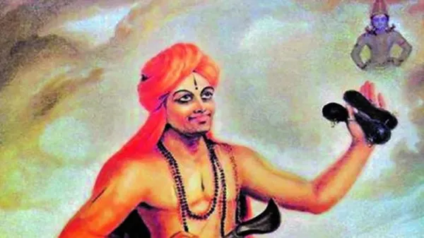 ಒಮ್ಮೆ ಪುರಂದರ ದಾಸರು ಹೊರಗಿನಿಂದ ಬಂದು ಕಾಲು ತೊಳೆಯಲು ನೀರು ಕೇಳಿದಾಗ ಅವರ ಮಗನು ವಿಠಲನ ಪೂಜೆಗೆ ಇಟ್ಟಿದ್ದ ಚಿನ್ನದ ಗಿಂಡಿಯಲ್ಲಿ ನೀರು ತಂದುಕೊಡುವನು. ಅದನ್ನು ಕಂಡು ಕೋಪಗೊಂಡ ದಾಸರು, “ದೇವರ ಗಿಂಡಿಯಲ್ಲಿ ನೀರು ತಂದೆಯಾ?" ಎಂದು ಆ ಬಾಲಕನ ತಲೆಗೆ ಜೋರಾಗಿ ಮಟ್ಟಿದರಂತೆ, ಆಘಾತಗೊಂಡ ಬಾಲಕ ಅಲ್ಲಿಂದ ಅಳುತ್ತಾ ಹೋದ. ಇದಾಗಿ ಕೆಲವು ದಿನಗಳ ನಂತರ ಗುಡಿಯಲ್ಲಿ ವಿಠಲನ ರತ್ನಕಂಕಣ ಕಾಣೆಯಾಗಿತ್ತು. ಎಲ್ಲರೂ ಹುಡುಕು ತ್ತಿರಲು, ಗುಡಿಗೆ ವಿಠಲನ ದರ್ಶನಕ್ಕೆ ಬಂದ ವೇಶ್ಯೆಯ ಕೈಯಲ್ಲಿ ಕಂಕಣ ಕಂಡಿತು. ಅವಳನ್ನು ಹಿಡಿದು ಪ್ರಶ್ನೆ ಮಾಡಲು, “ನನಗೆ ಎಲ್ಲಿಂದ ಬರಬೇಕು ಸ್ವಾಮಿ ಈ ರತ್ನಕಂಕಣ? ಪುರಂದರ ದಾಸರೇ ಕೊಟ್ಟದ್ದು" ಎಂದು ಹೇಳಿದಳು.