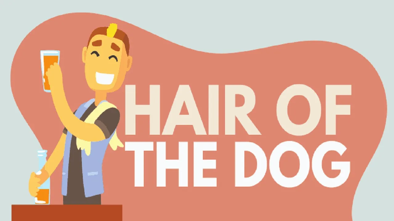 ಇದರ ನೇರ ಅರ್ಥ ‘ನಿನ್ನನ್ನು ಕಚ್ಚಿದ ನಾಯಿಯ ಕೂದಲು’ ಎಂದಾಗಿದ್ದರೂ, ಇದರ ಬಳಕೆಯು ಕುಡಿತ ಮತ್ತು ಹ್ಯಾಂಗೋವರ್ಗೆ ಸಂಬಂಧಿಸಿದೆ. ಹಾಗಾದರೆ Hair of the Dog ಅಂದರೆ ಏನು? ಯಾರಾದರೂ ಅತಿಯಾಗಿ ಮದ್ಯಪಾನ ಮಾಡಿ, ಮರುದಿನ ಬೆಳಗ್ಗೆ ಎದ್ದಾಗ ತಲೆನೋವು, ಸುಸ್ತು ಅಥವಾ ತಲೆಸುತ್ತು ಅನುಭವಿಸುತ್ತಿದ್ದರೆ, ಆ ಹ್ಯಾಂಗೋವರ್ ಇಳಿಸಲು ಪುನಃ ಅಲ್ಪ ಪ್ರಮಾಣದಲ್ಲಿ ಮದ್ಯ ಸೇವಿಸುವುದನ್ನು 'Hair of the dog' ಎಂದು ಕರೆಯಲಾಗುತ್ತದೆ.