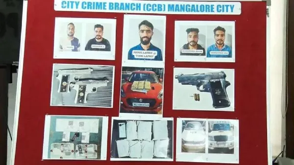 ಕೇರಳದ ಕಾಸರಗೋಡು ಮೂಲದವರಾದ ಮನ್ಸೂರ್, ನೌಫಾಲ್, ಅಬ್ದುಲ್ ಲತೀಫ್ ಅಲಿಯಾಸ್ ತೋಕು ಲತೀಫ್, ಮೊಹಮ್ಮದ್ ಅಜ್ಗರ್, ಮೊಹಮ್ಮದ್ ಸಾಲಿ ಎಂಬವರನ್ನು ಪೊಲೀಸರು ಬಂಧಿಸಿದ್ದಾರೆ. ಬಂಧಿತರಿಂದ ಮೂರು ಕಂಟ್ರಿಮೇಡ್ ಪಿಸ್ತೂಲ್, 6 ರೌಂಡ್ಸ್ ಲೈವ್ ಬುಲೆಟ್ಸ್, 12 ಕೆಜಿ ಗಾಂಜಾ, ಕಾರು, ಮೊಬೈಲ್ ವಶಪಡಿಸಿಕೊಂಡಿದ್ದಾರೆ.