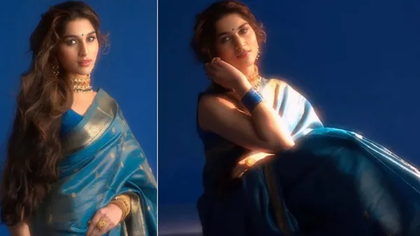 ಈ ಫೋಟೋಗಳಲ್ಲಿ ಮಾಲಾಶ್ರೀಯವರ ಸೀರೆ ಉಟ್ಟಿರುವ ಆರಾಧನಾ ಥೇಟ್ ಅಮ್ಮ ಯುವತಿಯಾಗಿದ್ದಾಗ ಕಾಣಿಸುತ್ತಿದ್ದ ಹಾಗೆಯೇ ಕಾಣಿಸುತ್ತಿದ್ದಾರೆ. ಶೈನಿಂಗ್ ಸ್ಕೈ ಬ್ಲ್ಯೂ ರೇಷ್ಮೆ ಸೀರೆ ಇದಾಗಿದ್ದು, ಚಿಕ್ಕ ಗೋಲ್ಡನ್ ಬಾರ್ಡರ್ ಹೊಂದಿದೆ.
