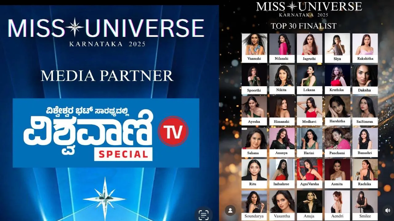 ಉದ್ಯಾನನಗರಿ ಬೆಂಗಳೂರಿನಲ್ಲಿ ಇದೇ ಮೊತ್ತ ಮೊದಲ ಬಾರಿಗೆ ಹಮ್ಮಿಕೊಂಡಿರುವ ಮಿಸ್ ಯುನಿವರ್ಸ್ ಕರ್ನಾಟಕ 2025 ವಿಭಾಗದ ಬ್ಯೂಟಿ ಪೇಜೆಂಟ್ನ ಫಿನಾಲೆಗೆ ವಿಶ್ವವಾಣಿ ಟಿವಿ ಸ್ಪೆಷಲ್ ಯುಟ್ಯೂಬ್ ಚಾನೆಲ್ ಮೀಡಿಯಾ ಪಾರ್ಟನರ್ ಆಗಿ ಕೈ ಜೋಡಿಸಿದೆ.