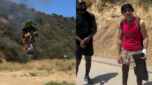 ಹಾಲಿವುಡ್ನ ಸ್ಕಾಟ್ ಆಂಥೋನಿ ಮಿಚೆಲ್ ಮತ್ತು ದಾವನ್ ಡಿಮಾರ್ಕೊ ದಂಪತಿ, ರನ್ಯಾನ್ ಕ್ಯಾನ್ಯನ್ನಲ್ಲಿ ನಡೆದುಕೊಂಡು ಹೋಗುತ್ತಿದ್ದಾಗ ಬೆಂಕಿಯಿಂದ ಹೊತ್ತಿ ಉರಿಯುತ್ತಿದ್ದ ತಾಳೆ ಮರವನ್ನು ಗಮನಿಸಿದ್ದಾರೆ. ಈ ವೇಳೆ ಪೊದೆಗಳ ಮೂಲಕ ಹೊರಬಂದ ಅನುಮಾನಾಸ್ಪದ ವ್ಯಕ್ತಿಯನ್ನು ಗಮನಿಸಿದರು. ಡಿಮಾರ್ಕೊ ತನ್ನ ಫೋನ್ನಲ್ಲಿ ಘಟನೆಯ ದೃಶ್ಯವನ್ನು ಸೆರೆಹಿಡಿದಿದ್ದಾರೆ.