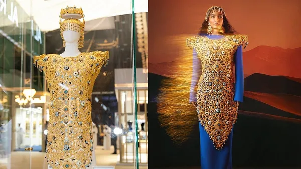 ಶೋ ಮುಖ್ಯ ಆಕರ್ಷಣೆ ಅಲ್ ರೊಮೈಜಾನ್ನ ‘ದುಬೈ ಡ್ರೆಸ್’. 21 ಕ್ಯಾರಟ್ ಚಿನ್ನದಿಂದ ಮಾಡಿದ ಈ ಉಡುಗೆ, 10.08 ಕೆಜಿ ತೂಕವಿದ್ದು, ₹ 10.87 ಕೋಟಿ ಮೌಲ್ಯವಿದೆ. ಇದರಲ್ಲಿ 398 ಗ್ರಾಂ ಮುಕುಟ, 8,810.6 ಗ್ರಾಂ ಮಾಲೆ, 134.1 ಗ್ರಾಂ ಕಿವಿಯ ಆಭರಣ ಸೇರಿವೆ. ಇದಕ್ಕಾಗಿ ಕಲಾವಿದರು ತಿಂಗಳುಗಟ್ಟಲೆ ಕೆಲಸ ಮಾಡಿದ್ದು, ಅಲ್ ರೊಮೈಜಾನ್ ಅವರ ಐಷಾರಾಮಿ ಕಲೆಯನ್ನು ತೋರಿಸುತ್ತದೆ. ಈ ಹಿಂದಿನ ಶೋನಲ್ಲಿ ಇವರು ₹ 1.5 ಮಿಲಿಯನ್ನ ಚಿನ್ನದ ಸೈಕಲ್ ಅನ್ನು ಪ್ರದರ್ಶಿಸಿದ್ದರು.