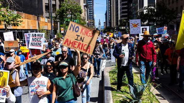 ವಾಷಿಂಗ್ಟನ್: ಅಮೆರಿಕ ಅಧ್ಯಕ್ಷ ಡೊನಾಲ್ಡ್ ಟ್ರಂಪ್ (US President Donald Trump) ಅವರ ವಲಸೆ ನೀತಿ (immigration policy) ಹಾಗೂ ಇರಾನ್ (Iran war) ಮೇಲೆ ಯುಎಸ್ ನಡೆಸುತ್ತಿರುವ ದಾಳಿಯನ್ನು ವಿರೋಧಿಸಿ ಅಮೆರಿಕ ಮತ್ತು ಯುರೋಪ್ ನ ವಿವಿಧ ಭಾಗಗಳಲ್ಲಿ ಶನಿವಾರ "ರಾಜರು ಇಲ್ಲ" ಪ್ರತಿಭಟನೆ (No Kings Protest) ನಡೆಯಿತು. ಇದರಲ್ಲಿ ಲಕ್ಷಾಂತರ ಜನರು ಪಾಲ್ಗೊಂಡಿದ್ದರು. ಅಮೆರಿಕದ ಎಲ್ಲಾ 50 ರಾಜ್ಯಗಳ ಪ್ರಮುಖ ನಗರಗಳು ಮತ್ತು ಸಣ್ಣ ಪಟ್ಟಣಗಳಲ್ಲಿ ಪ್ರತಿಭಟನೆಗಳು ನಡೆಯಿತು. ಅಮೆರಿಕ ಅಧ್ಯಕ್ಷರ ವಿರುದ್ಧ ಒಂದು ವರ್ಷದಲ್ಲಿ ನಡೆಯುತ್ತಿರುವ ಮೂರನೇ ಪ್ರತಿಭಟನೆ ಇದಾಗಿದೆ.