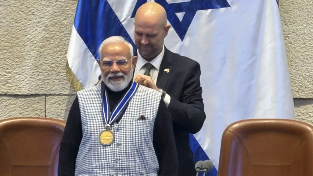 ಇಸ್ರೇಲ್ ಮತ್ತು ಪಾಲೆಸ್ತೀನ್ ಎರಡೂ ದೇಶಗಳಿಂದ ಅತ್ಯುನ್ನತ ಗೌರವಗಳನ್ನು ಪಡೆದ ಅಪರೂಪದ ನಾಯಕರಾಗಿ ಪ್ರಧಾನಿ ನರೇಂದ್ರ ಮೋದಿ ಗುರುತಿಸಿಕೊಂಡಿದ್ದಾರೆ. ಇವರಿಗೆ ಬುಧವಾರ ಇಸ್ರೇಲ್ 'ಸ್ಪೀಕರ್ ಆಫ್ ದಿ ನೆಸ್ಸೆಟ್ ಪದಕ' ನೀಡಿ ಗೌರವಿಸಿದೆ. ಭಾರತ ಮತ್ತು ಇಸ್ರೇಲ್ ನಡುವಿನ ಸಂಬಂಧವನ್ನು ಬಲಪಡಿಸುವಲ್ಲಿ ಅವರ ಅಸಾಧಾರಣ ಕೊಡುಗೆಯನ್ನು ಗುರುತಿಸಿ ಈ ಗೌರವ ನೀಡಲಾಗಿದೆ.