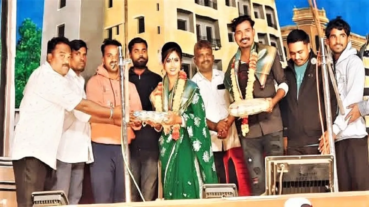 ಬನಶಂಕರಿ ಜಾತ್ರೆಯಲ್ಲಿ ಕಲ್ಲೂರಿನ ಗುರು ಮಲ್ಲಿಕಾರ್ಜುನ ಹಾಸ್ಯ ಪಾತ್ರದಲ್ಲಿ ನಟಿಸಿರುವ ರಂಗ ಕಲಾವಿದೆ ಸೌಂದರ್ಯ ಬಾದಾಮಿ ಇವರನ್ನು ಅಭಿಮಾನಿಗಳು ಸನ್ಮಾನಿಸುತ್ತಿರುವುದು -