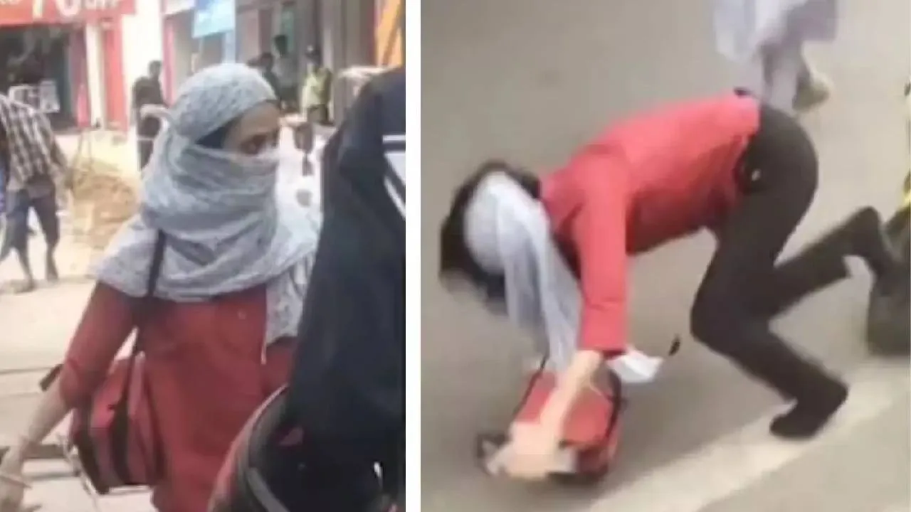 Lady falls to the ground after Rapido rider slaps her hard pic.twitter.com/eM4aec1NzW