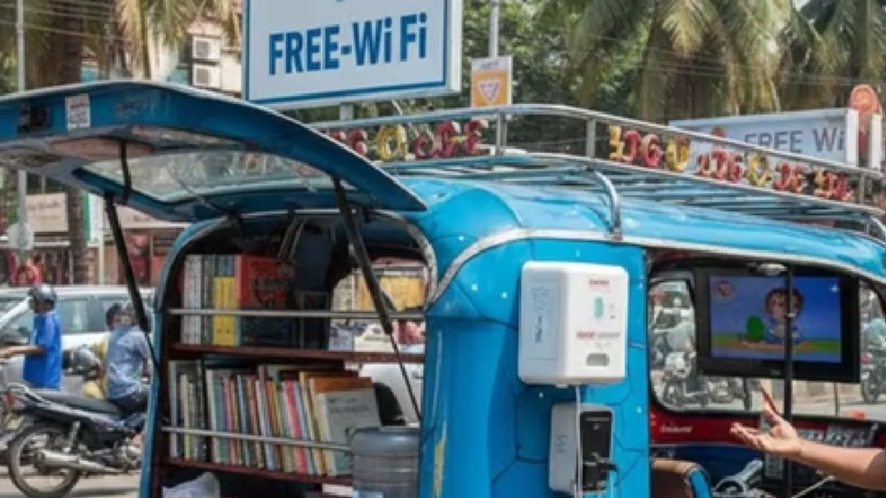 ಸ್ಯಾನಿಟರಿ ಪ್ಯಾಡ್ಸ್, ಫ್ಯಾನ್, ವೈ-ಫೈ, ನೀರಿನ ಬಾಟಲಿ ಇರುವ ಆಟೋ (ಎಐ ರಚಿತ ಚಿತ್ರ) -