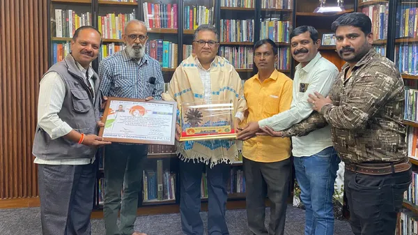 ಬೆಂಗಳೂರು: ಯೋಗಕ್ಷೇಮ ಮೀಡಿಯಾ ಪ್ರೈವೇಟ್ ಲಿಮಿಟೆಡ್, ವಿಶ್ವಂ ವೈಚಾರಿಕ ವಾಹಿನಿ ಹಾಗೂ ಕರ್ನಾಟಕ ರಾಜ್ಯ ಪತ್ರಿಕಾ ವಿತರಕರ ಒಕ್ಕೂಟದ ವತಿಯಿಂದ ಜನವರಿ 30 ರಂದು ತುಮಕೂರಿನ ಗುಬ್ಬಿ ವೀರಣ್ಣ ಕಲಾಕ್ಷೇತ್ರದಲ್ಲಿ ಗಾಂಧಿ ಸ್ಮರಣಾರ್ಥ ಆಯೋಜಿಸಲಾಗಿದ್ದ ಪತ್ರಿಕಾ ವಿತರಕರ ಬದುಕಿನ ಕುರಿತಾದ ಏಕವ್ಯಕ್ತಿ ರಂಗ ಪ್ರದರ್ಶನ "ನಸುಕಿನ ನೊಗ" ನಾಟಕದ ಪ್ರದರ್ಶನದ ಸಂದರ್ಭದಲ್ಲಿ ವಿಶ್ವವಾಣಿ (Vishwavani) ಪತ್ರಿಕೆಯ ಪ್ರಧಾನ ಸಂಪಾದಕರಾದ ( Vishweshwar Bhat) ವಿಶ್ವೇಶ್ವರ ಭಟ್ಟರಿಗೆ ಪ್ರದಾನ ಮಾಡಬೇಕಾಗಿದ್ದ ಗಾಂಧಿ ಪುರಸ್ಕಾರ (Gandhi Award) ಪ್ರಶಸ್ತಿಯನ್ನು ಇಂದು ವಿಶ್ವವಾಣಿ ಕಚೇರಿಯಲ್ಲಿ ನೀಡಲಾಯಿತು.