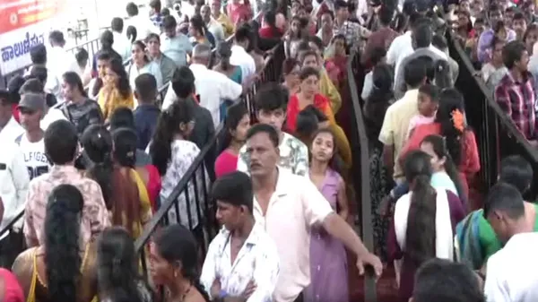 ಈಗಾಗಲೇ ಸಹಸ್ರಾರು ಭಕ್ತರು ಹಾಸನಾಂಬೆ ದರ್ಶನ ಪಡೆಯಲು 50 ಸಾವಿರ ಮುಂಗಡ ಟಿಕೆಟ್ ಕಾಯ್ದಿರಿಸಿದ್ದಾರೆ. ಹೀಗಾಗಿ, ತಾತ್ಕಾಲಿಕವಾಗಿ ಟಿಕೆಟ್ ಬುಕಿಂಗ್ ಕೂಡ ಸ್ಥಗಿತಗೊಳಿಸಲಾಗಿದೆ. ಹಾಸನಾಂಬೆ ದರ್ಶನಕ್ಕೆ ಭಕ್ತರ ಸಾಗರ ಹೆಚ್ಚಾಗಿರುವ ಕಾರಣ ದರ್ಶನಕ್ಕೆ ಕಿಲೋಮೀಟರ್ಗಟ್ಟಲೇ ಸಾಲು ದೊಡ್ಡದಾಗಿದೆ. 1,000 ರೂ. ಹಾಗೂ 300 ರೂ. ಟಿಕೆಟ್ ಪಡೆದ ಭಕ್ತರು ಪ್ರತ್ಯೇಕ ಸಾಲುಗಳಲ್ಲಿ ಬಂದು ದರ್ಶನ ಪಡೆಯುತ್ತಿದ್ದಾರೆ. ಎರಡೂ ಸಾಲುಗಳು ಕಿಲೋಮೀಟರ್ಗೂ ಅಧಿಕ ಉದ್ದವಾಗಿವೆ.