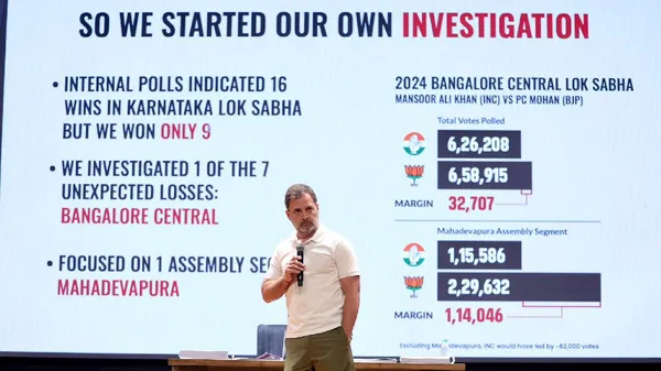 ಬೆಂಗಳೂರು ಸೆಂಟ್ರಲ್ ಲೋಕಸಭಾ ಕ್ಷೇತ್ರದ ವ್ಯಾಪ್ತಿಗೆ ಬರುವ ಮಹದೇವಪುರ ವಿಧಾನಸಭಾ ಕ್ಷೇತ್ರದ ಮತದಾರರ ದಾಖಲೆಗಳನ್ನು ರಾಹುಲ್ ಗಾಂಧಿ ಅವರ ಮಾರ್ಗದರ್ಶನದಲ್ಲಿ ಸುದೀರ್ಘ 6 ತಿಂಗಳ ಕಾಲ ಹಲವು ಮಂದಿ ಅಧ್ಯಯನ ನಡೆಸಿ, ಮತಗಳ್ಳತನದ ಇಂಚಿಂಚೂ ಮಾಹಿತಿಯನ್ನು ಪತ್ತೆ ಹಚ್ಚಲಾಗಿದೆ. ಲೋಕಸಭಾ ಚುನಾವಣೆಯಲ್ಲಿ ಬಿಜೆಪಿ ಪಕ್ಷ ಚುನಾವಣಾ ಆಯೋಗವನ್ನು ದುರ್ಬಳಕೆ ಮಾಡಿಕೊಂಡು ಕೇವಲ ಮೂರುವರೆ ಲಕ್ಷ ಮತದಾರರಿರುವ ಮಹದೇವಪುರ ಕ್ಷೇತ್ರದಲ್ಲಿ 1ಲಕ್ಷದ 250 ಮತಗಳನ್ನು ಅಕ್ರಮವಾಗಿ ಪಡೆದುಕೊಂಡು ಚುನಾವಣೆಯಲ್ಲಿ ಜಯಿಸಿದೆ. ಮಹದೇವಪುರ ವಿಧಾನಸಭಾ ಕ್ಷೇತ್ರಕ್ಕೆ ಸಂಬಂಧಿಸಿದಂತೆ 5 ರೀತಿಯಲ್ಲಿ ಚುನಾವಣಾ ಅಕ್ರಮ ಎಸಗಲಾಗಿದೆ ಎಂದು ಸಿದ್ದರಾಮಯ್ಯ ಹೇಳಿದ್ದಾರೆ.