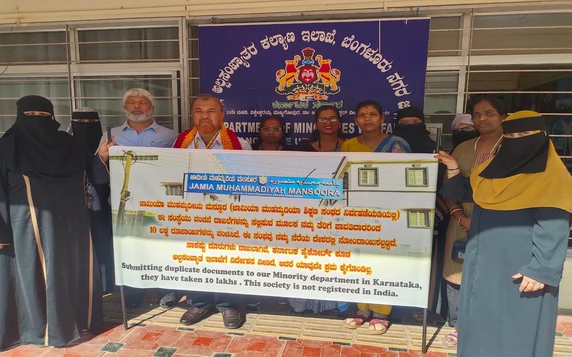 ವಿಶ್ವೇಶ್ವರಯ್ಯ ಟವರ್ ನಲ್ಲಿರುವ ಅಲ್ಪಸಂಖ್ಯಾತ ಕಲ್ಯಾಣ ಇಲಾಖೆಯ ಕಚೇರಿಗೆ ತೆರಳಿ ಅಧಿಕಾರಿಗಳ ನಿಷ್ಕಾಳಜಿ ವಿರುದ್ಧ ಹೋರಾಟಗಾರರು. ಸಾಮರ ಇಂಟರ್ ನ್ಯಾಷನಲ್ ಇಸ್ಲಾಮಿಕ್ ಸ್ಕೂಲ್ ಮಾನ್ಯತೆಯನ್ನು ಶಾಲಾ ಶಿಕ್ಷಣ ಇಲಾಖೆ ರದ್ದುಪಡಿಸಿದ್ದು, ಅಲ್ಪ ಸಂಖ್ಯಾತರ ಕಲ್ಯಾಣ ಇಲಾಖೆ ನೀಡಿರುವ 10 ಲಕ್ಷ ರೂಪಾಯಿ ಅನುದಾನ ವಾಪಸ್ ಪಡೆಯಬೇಕೆಂದು ಹೈಕೋರ್ಟ್, ಶಿಕ್ಷಣ ಇಲಾಖೆ ಆದೇಶ ನೀಡಿದೆ. ಆದೇಶಗಳನ್ನು ಪಾಲಿಸುತ್ತಿಲ್ಲ ಎಂದು ತೀವ್ರ ಆಕ್ರೋಶ ವ್ಯಕ್ತಪಡಿಸಿದರು.