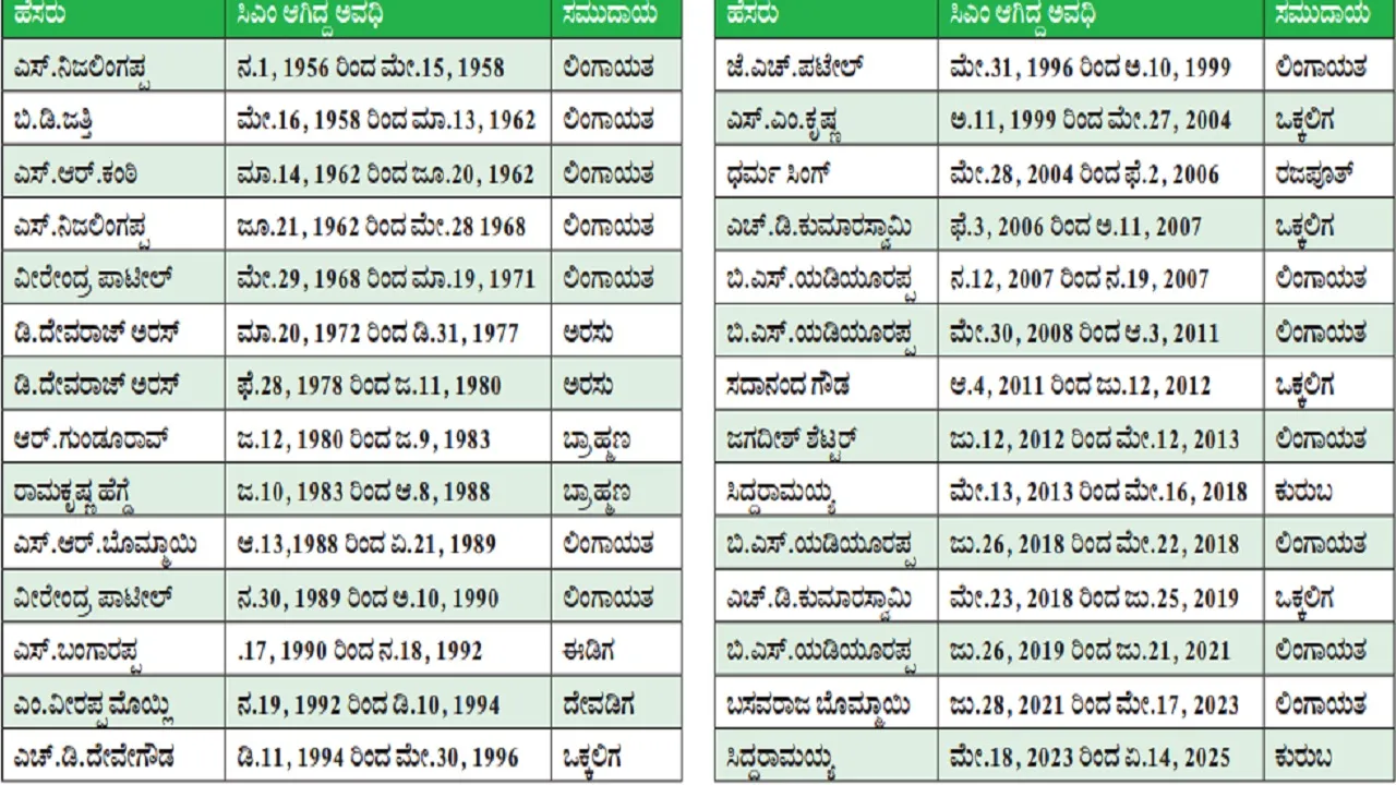 ಸಿಎಂ ಸ್ಥಾನದಲ್ಲಿ ಲಿಂಗಾಯತ, ಒಕ್ಕಲಿಗರದ್ದೇ ಪ್ರಾಬಲ್ಯ