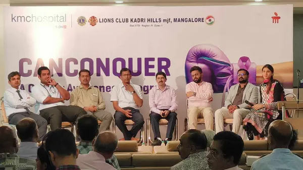 ಮಂಗಳೂರು: ಡಾ. ಬಿ ಆರ್ ಅಂಬೇಡ್ಕರ್ ವೃತ್ತದಲ್ಲಿರುವ ಕೆ ಎಂ ಸಿ ಆಸ್ಪತ್ರೆ(KMC Hospital) ಮಂಗಳೂರು(Mangalore) ಲಯನ್ಸ್ ಕ್ಲಬ್ ಕದ್ರಿ ಸಹಯೋಗದಲ್ಲಿ ‘ಕ್ಯಾನ್ ಕಾನ್ಕರ್’ ಸಾರ್ವಜನಿಕ ಜಾಗೃತಿ(Cancer Awareness) ಕಾರ್ಯಕ್ರಮವನ್ನು ಆಯೋಜಿಸಿತ್ತು.ಕಾರ್ಯಕ್ರಮದಲ್ಲಿ ಕ್ಯಾನ್ಸರ್ ಕುರಿತಾದ ಮಿಥ್ಯ ಮತ್ತು ಸತ್ಯ ಹಾಗೂ ಕ್ಯಾನ್ಸರ್ ವಿರುದ್ಧ ಹೋರಾಟದಲ್ಲಿ ಮನೋಸ್ಥೈರ್ಯದ ಮಹತ್ವದ ಮೇಲೆ ತಜ್ಞರು ಬೆಳಕು ಚೆಲ್ಲಿದರು. ಕೇವಲ ವೈದ್ಯಕಿಯ ಚಿಕಿತ್ಸೆಗೆ ಬಗ್ಗೆ ಮಾತ್ರವಲ್ಲದೆ ಭಾವನಾತ್ಮಕ ಹಾಗೂ ಜೆನೆಟಿಕ್ ಆಯಾಮಗಳ ಬಗ್ಗೆಯೂ ಸಮಗ್ರ ಚರ್ಚೆ ನಡೆಸಲಾಯಿತು. ಆರಂಭಿಕ ಹಂತದಲ್ಲಿ ರೋಗ ಪತ್ತೆ ಹಚ್ಚಿ ಚಿಕಿತ್ಸೆ ಆರಂಭಿಸಿದ್ದಲ್ಲಿ ಕ್ಯಾನ್ಸರ್ ರೋಗವನ್ನು ಗುಣಪಡಿಸಬಹುದು ಎಂಬ ಸಂದೇಶವನ್ನು ತಜ್ಞರು ನೀಡಿದ್ದಾರೆ.