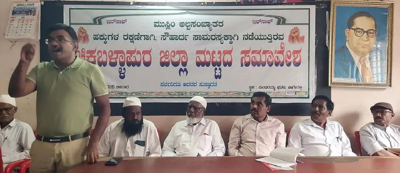 ಪಟ್ಟಣದಲ್ಲಿ ಹಮ್ಮಿಕೊಂಡಿದ್ದ ಮುಸ್ಲಿಂ ಅಲ್ಪಸಂಖ್ಯಾತರ ಹಕ್ಕುಗಳ ರಕ್ಷಣೆಗಾಗಿ, ಸೌಹಾರ್ದ ಸಾಮರಸ್ಯಕ್ಕೆ ಚಿಕ್ಕಬಳ್ಳಾಪುರ ಜಿಲ್ಲಾ ಮಟ್ಟದ ಸಮಾವೇಶ ಉದ್ಘಾಟಿಸಿ ಮಾತನಾಡಿ ದರು.