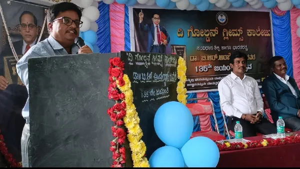 ನಗರದ ಗೋಲ್ಡ್ನ್ ಗ್ಲೀಮ್ಸ್ ಕಾಲೇಜಿನಲ್ಲಿ ಏರ್ಪಡಿಸಿದ್ದ ಬಾಬಾ ಸಾಹೇಬ ಅಂಬೇಡ್ಕರ್ ಅವರ 135ನೇ ಜಯಂತಿಗೆ ದೀಪಬೆಳಗುವ ಮೂಲಕ ಚಾಲನೆ ನೀಡಿ ಮಾತನಾಡಿದರು.