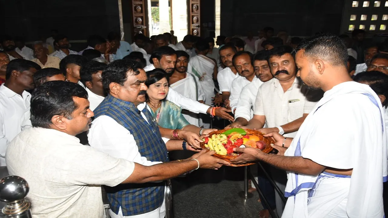 ಚಿಕ್ಕಬಳ್ಳಾಪುರ ನಗರ ಹೊರವಲಯ ವೀರಾಂಜನೇಯಸ್ವಾಮಿ ದೇವಾಲಯದಲ್ಲಿ ದೇವೇಗೌಡರ ಆರೋಗ್ಯ ಸುಧಾರಣೆಗೆ ಆಗ್ರಹಿಸಿ ವಿಶೇಷ ಪೂಜೆ ಹಾಗೂ ಈಡುಗಾಯಿ ಸೇವೆ ಸಲ್ಲಿಸಿದರು. -