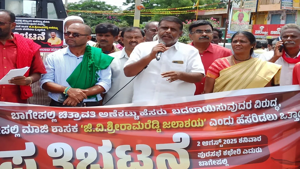 Chikkaballapur News: ಚಿತ್ರಾವತಿ ಜಲಾಶಯಕ್ಕೆ ಮಾಜಿ ಶಾಸಕ ಜಿ.ವಿ. ಶ್ರೀರಾಮರೆಡ್ಡಿ ಹೆಸರು ನಾಮಕರಣ ಮಾಡುವಂತೆ ಆಗ್ರಹಿಸಿ ಪ್ರತಿಭಟನೆ