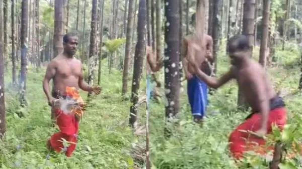 ಚಿಕ್ಕಮಗಳೂರು, ನ.6: ಜಮೀನು ಸರ್ವೆ ವೇಳೆ ಕೈಯಲ್ಲಿ ಪಂಜು ಹಿಡಿದು ಕಾಂತಾರ ಸಿನಿಮಾದಲ್ಲಿ ಬರುವ ದೈವದ ರೀತಿಯಲ್ಲೇ ವರ್ತಿಸಿ ವ್ಯಕ್ತಿಯೊಬ್ಬ ಹೈಡ್ರಾಮಾ ನಡೆಸಿರುವ ಪ್ರಸಂಗ ಚಿಕ್ಕಮಗಳೂರು ಜಿಲ್ಲೆ (Chikkamagaluru News) ಕೊಪ್ಪ ತಾಲೂಕು ಚಿಕ್ಕನಗುಂಡಿ ಗ್ರಾಮದಲ್ಲಿ ನಡೆದಿದೆ. ಜಮೀನು ಸರ್ವೆ ಮಾಡುವ ಸ್ಥಳದಲ್ಲಿ ದೈವ ಮೈಮೇಲೆ ಬಂದಿದೆ ಎನ್ನುವ ರೀತಿ ಸುರೇಶ್ ಎಂಬಾತ ವರ್ತಿಸಿದ್ದು, ಮಹಿಳೆ ಮೇಲೆ ಹಲ್ಲೆ ನಡೆಸಿದ್ದಾರೆ.