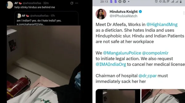 ಪಹಲ್ಗಾಮ್ ದಾಳಿ ನಂತರ ಭಾರತ ಹಾಗೂ ಪಾಕಿಸ್ತಾನ ಮಧ್ಯೆ ಉದ್ವಿಗ್ನ ಪರಿಸ್ಥಿತಿ ಇರುವ ಸಂದರ್ಭದಲ್ಲಿಯೇ ವೈದ್ಯೆ ಈ ರೀತಿ ಪೋಸ್ಟ್ ಮಾಡಿರುವುದಕ್ಕೆ ಹಿಂದೂ ಸಂಘಟನೆಗಳಿಂದ ತೀವ್ರ ವಿರೋಧ ವ್ಯಕ್ತವಾಗಿದೆ. ಮಂಗಳೂರಿನ ಹೈಲ್ಯಾಂಡ್ ಆಸ್ಪತ್ರೆ ವೈದ್ಯೆ ಅಫೀಫ ಫಾತಿಮಾ ಎಂಬಾಕೆ ದೇಶ ವಿರೋಧಿ ಸಂದೇಶ ಪ್ರಕಟಿಸಿದ್ದು, ಸದ್ಯ ಆಕೆಯ ವಿರುದ್ಧ ಮಂಗಳೂರು ನಗರದ ಪಾಂಡೇಶ್ವರ ಪೊಲೀಸ್ ಠಾಣೆಯಲ್ಲಿ ಎಫ್ಐಆರ್ ದಾಖಲಿಸಲಾಗಿದೆ. ಹೈಲ್ಯಾಂಡ್ ಆಸ್ಪತ್ರೆ ಹೆಚ್ಆರ್ ಮೊಹಮ್ಮದ್ ಅಸ್ಲಾಂ ದೂರು ಆಧರಿಸಿ ಬಿಎನ್ಎಸ್ ಕಲಂ 196(1)(a), 353(2) ಅಡಿಯಲ್ಲಿ ಎಫ್ಐಆರ್ ದಾಖಲಿಸಲಾಗಿದೆ.