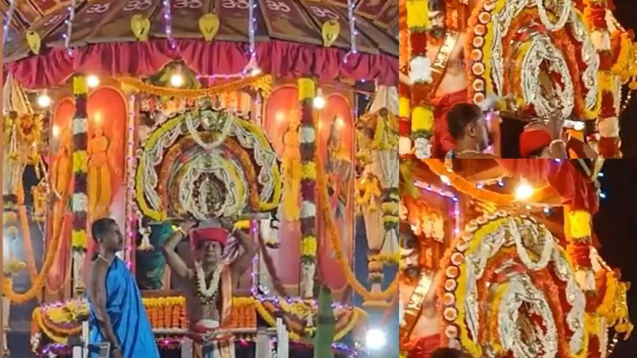 Vitla Panchalingeshwara Jatre: ಬಂಟ್ವಾಳ ತಾಲೂಕಿನಲ್ಲಿರುವ ವಿಟ್ಲ ಶ್ರೀ ಪಂಚಲಿಂಗೇಶ್ವರ ದೇವರ ರಥೋತ್ಸವದ ವೇಳೆ ಅವಾಂತರ ನಡೆದಿದ್ದು, ರಥವೇರುತ್ತಿದ್ದ ದೇವರ ಉತ್ಸವ ಮೂರ್ತಿಗೆ ಡ್ರೋನ್ ಬಡಿದಿದೆ.
