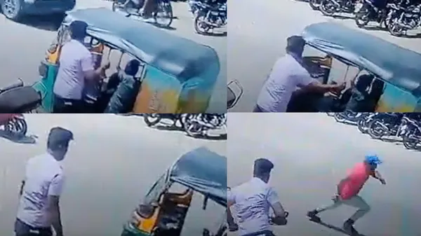 ಶುಕ್ರವಾರ ಬೆಳಗ್ಗೆ ಅಂಗಡಿಯಲ್ಲಿ ದಿನಸಿ ಖರೀದಿಸಲು ಚಾಲಕ ಆಟೋವನ್ನು ರಸ್ತೆ ಬದಿ ನಿಲ್ಲಿಸಿ ತೆರಳಿದ್ದರು. ರಸ್ತೆ ಬದಿಯ ಪಾರ್ಕಿಂಗ್ ಸ್ಥಳದಲ್ಲಿ ಯುವಕ ಬೈಕ್ ನಿಲ್ಲಿಸಿದ್ದನು. ಬೈಕ್ ಹಿಂದೆ ಆಟೋ ಪಾರ್ಕ್ ಮಾಡಲಾಗಿತ್ತು. ಇದರಿಂದ ಬೈಕ್ ತೆಗೆಯಲಾಗದೆ ಯುವಕ ಪರದಾಡಿದ್ದಾನೆ. ಆಗ, ಸಿಟ್ಟಿನಿಂದ ಯುವಕ ಆಟೋ ಬಳಿ ಹೋಗಿ ಮಕ್ಕಳಿರುವುದು ನೋಡಿಯೂ ನ್ಯೂಟ್ರಲ್ ಮಾಡಿ ಹಿಂದೆ ತಳ್ಳಿದ್ದಾನೆ. ಆಟೋ ವೇಗವಾಗಿ ಹಿಂದೆ ಚಲಿಸುವುದನ್ನು ಕಂಡು ಸ್ಥಳದಲ್ಲಿದ್ದವರು ಕೂಗಾಡಿದ್ದಾರೆ. ಕೂಡಳೇ ಸ್ಥಳಕ್ಕೆ ಓಡಿ ಬಂದ ಚಾಲಕ ಆಟೋ ನಿಲ್ಲಿಸಿದ್ದಾನೆ.