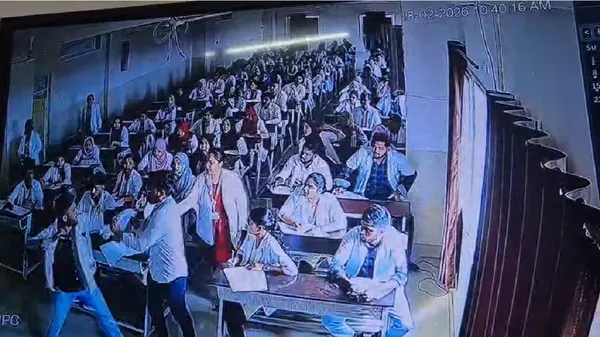 ಉತ್ತರ ಪತ್ರಿಕೆ ಪಡೆದು ತರಗತಿ ಕೊಠಡಿಯಿಂದ ಹೊರಗೆ ಹೋಗುವಂತೆ ಸೂಚಿಸಿದ್ದರಿಂದ ವಿದ್ಯಾರ್ಥಿ ಕೋಪಗೊಂಡು ಸಹಾಯಕ ಪ್ರಾಧ್ಯಾಪಕರ ಮೇಲೆ ಹಲ್ಲೆ ನಡೆಸಿದ್ದಾನೆ. ಈ ಘಟನೆ ಪರೀಕ್ಷಾ ಹಾಲ್ನ ಸಿಸಿಟಿವಿ ಕ್ಯಾಮೆರಾದಲ್ಲಿ ಸೆರೆಯಾಗಿದೆ ಎಂದು ತಿಳಿದುಬಂದಿದೆ.