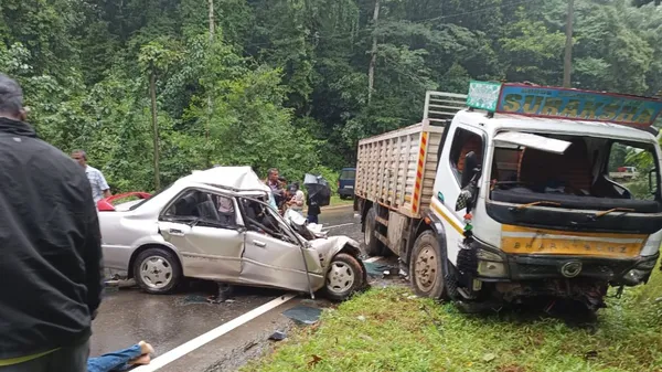 ಮಡಿಕೇರಿ: ಲಾರಿ ಹಾಗೂ ಕಾರಿನ ನಡುವೆ ಭೀಕರ ಅಪಘಾತ ಸಂಭವಿಸಿ, ನಾಲ್ವರು ಮೃತಪಟ್ಟಿರುವುದು (Madikeri accident) ಕೊಡಗು ಜಿಲ್ಲೆಯ ಮಡಿಕೇರಿ ತಾಲೂಕಿನ ದೇವರಕೊಲ್ಲಿ ಎಂಬಲ್ಲಿ ನಡೆದಿದೆ. ಕೊಡಗು ಜಿಲ್ಲೆಯ ಗೋಣಿಕೊಪ್ಪಲಿನ ಮಾರುಕಟ್ಟೆ ರಸ್ತೆಯ ನಿವಾಸಿಗಳಾದ ನಿಹಾದ್, ರಿಸ್ವಾನ್, ರಾಶಿಬ್ ಮತ್ತು ರಿಶು ಮೃತರು ಎಂದು ತಿಳಿದುಬಂದಿದೆ.