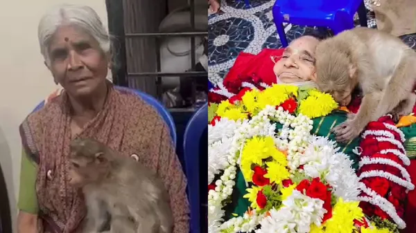 ನಿತ್ಯ ಮನೆ ಬಳಿ ಬರುತ್ತಿದ್ದ ಕೋತಿಯನ್ನು ಪಾರ್ವತಮ್ಮ ಅವರು ತಿಂಡಿ ಕೊಟ್ಟು ಪ್ರೀತಿಯಿಂದ ನೋಡಿಕೊಳ್ಳುತ್ತಿದ್ದರು. ಕೋತಿ ಜೊತೆ ನಿತ್ಯ ಒಡನಾಟ ಹೊಂದಿದ್ದ ವೃದ್ಧೆ ಇಂದು ವಯೋಸಹಜ ಕಾಯಿಲೆಯಿಂದ ಸಾವನ್ನಪ್ಪಿದ್ದಾರೆ. ವೃದ್ಧೆ ಸಾವಿಗೆ ಕೋತಿ ಮೂಕರೋದನ ವ್ಯಕ್ತಪಡಿಸಿದೆ.