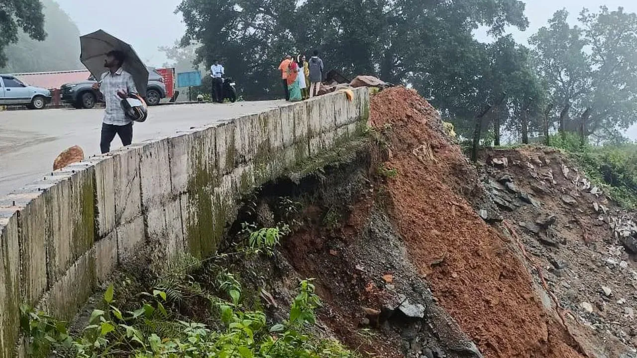 ಹುಲಿಕಲ್ ಘಾಟ್ನಲ್ಲಿ ರಸ್ತೆ ಕುಸಿದಿರುವುದು. -