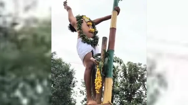 ಶಿವಮೊಗ್ಗ: ಭದ್ರಾವತಿ ತಾಲೂಕಿನ ಮೈದೊಳಲು ಗ್ರಾಮದಲ್ಲಿ ಪ್ರತಿ ವರ್ಷ ಶ್ರಾವಣ ಮಾಸದ ನಾಗರ ಪಂಚಮಿಯಂದು ಹನುಮಂತ ದೇವರ ಕಾರ್ಣಿಕೋತ್ಸವ (Hanumantha Devara Karnika) ನಡೆಯುತ್ತದೆ. ಅದೇ ರೀತಿ ಈ ಬಾರಿ ಮಂಗಳವಾರ ಸಂಜೆ ಗೋಧೂಳಿ ಲಗ್ನದಲ್ಲಿ ಗಂಗೆ ಪೂಜೆ ನೆರವೇರಿಸಿದ ನಂತರ ಹನುಮಂತ ದೇವರನ್ನು ಮೈಮೇಲೆ ಆಹ್ವಾನ ಮಾಡಿಕೊಂಡ ಗಣಮಗ ಪಿಳ್ಳೆಮಟ್ಟಿ ಗುಡ್ಡದಲ್ಲಿ ಎತ್ತರ ಕಂಬವೇರಿ ಕಾರ್ಣಿಕ ನುಡಿದಿದ್ದು, "ಶಿವನ ತುರುಬಿಗೆ ಪಂಜರದ ಗಿಳಿ ಹಾರಿತಲೆ ಎಚ್ಚರ, ಎಚ್ಚರ" ಎಂಬ ಭವಿಷ್ಯವಾಣಿ ಹೇಳಿದ್ದಾರೆ.