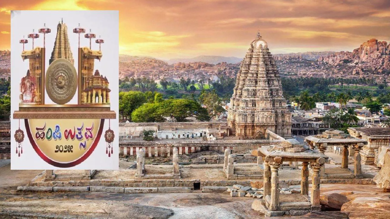 ಹಂಪಿ ಮತ್ತು ಒಳ ಚಿತ್ರದಲ್ಲಿ ಹಂಪಿ ಉತ್ಸವದ ಲಾಂಛನ. -