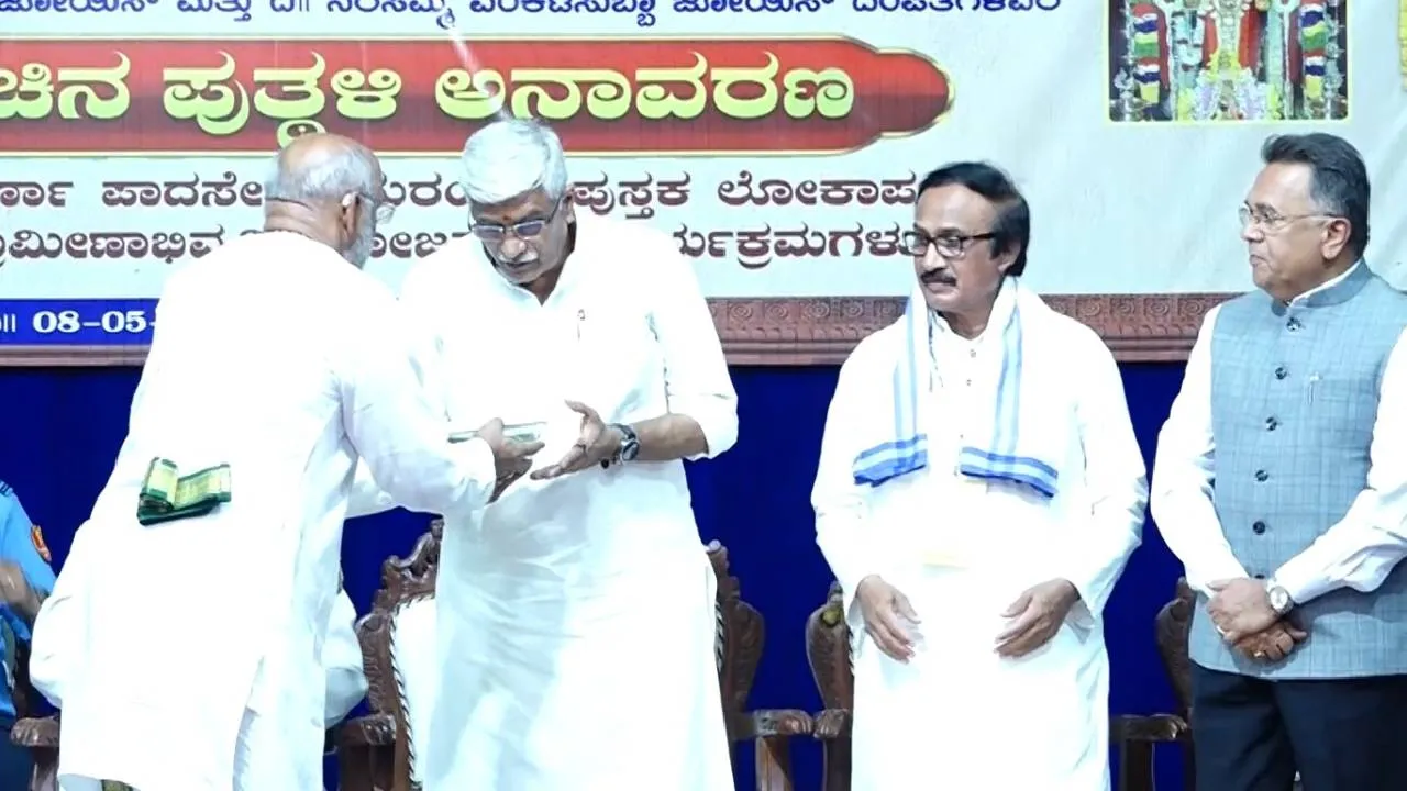 Sri Kshetra Horanadu: ಶ್ರೀ ಕ್ಷೇತ್ರ ಹೊರನಾಡಿನ 5ನೇ ಧರ್ಮಕರ್ತರ ಕಂಚಿನ ಪುತ್ಥಳಿ ಅನಾವರಣ ಕಾರ್ಯಕ್ರಮದಲ್ಲಿ ಧರ್ಮಕರ್ತ ಭೀಮೇಶ್ವರ ಜೋಶಿ ಅವರು, ಕೇಂದ್ರ ಸಚಿವ ಗಜೇಂದ್ರ ಸಿಂಗ್ ಅವರಿಗೆ 10 ಲಕ್ಷ ರೂ.ಗಳ ಚೆಕ್ ಅನ್ನು ಹಸ್ತಾಂತರಿಸಿದ್ದಾರೆ.