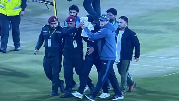 ಚೆಂಡು ಮುಖಕ್ಕೆ ಬಡಿದ ಬೆನ್ನಲ್ಲೆ ರಚಿನ್ ಮುಖದಿಂದ ರಕ್ತ ಸುರಿಯಿತು. ಈ ವೇಳೆ ಕಿವೀಸ್ ಆಲ್ರೌಂಡರ್ ಆಘಾತಕ್ಕೀಡಾದರು. ತಕ್ಷಣ ಮೈದಾನಕ್ಕೆ ಓಡಿ ಬಂದ ಪ್ರವಾಸಿ ತಂಡದ ಫಿಸಿಯೊ, ರಚಿನ್ ರವೀಂದ್ರ ಅವರ ಮುಖಕ್ಕೆ ಬಟ್ಟೆ ಹಾಕಿ ಡ್ರೆಸ್ಸಿಂಗ್ ರೂಂಗೆ ಕರೆದುಕೊಂಡು ಹೋದರು ಹಾಗೂ ನಂತರ ಆಸ್ಪತ್ರೆಯಲ್ಲಿ ಚಿಕಿತ್ಸೆ ನೀಡಲಾಗಿತ್ತು. ಈ ಘಟನೆ ನಡೆದ ಬೆನ್ನಲ್ಲೆ ಅಭಿಮಾನಿಗಳು ಸೋಶಿಯಲ್ ಮೀಡಿಯಾದಲ್ಲಿ ಪಾಕಿಸ್ತಾನ ಕ್ರಿಕೆಟ್ ಮಂಡಳಿಯನ್ನು ತೀವ್ರ ತರಾಟೆಗೆ ತೆಗೆದುಕೊಂಡಿದ್ದಾರೆ.