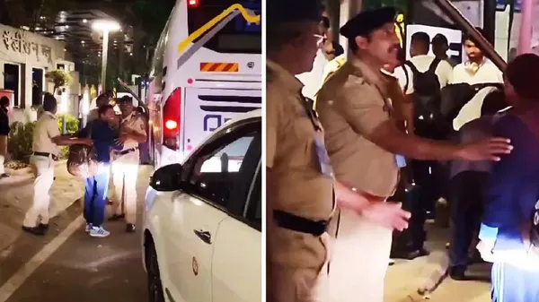 ಟೀಮ್ ಇಂಡಿಯಾ ಆಟಗಾರರು ಅಭ್ಯಾಸ ಮುಗಿಸಿ ಬಸ್ನಲ್ಲಿ ಹೋಟೆಲ್ಗೆ ಆಗಮಿಸಿದ ವೇಳೆ ಕಾರ್ನಲ್ಲಿ ಬಂದಿದ್ದ ಥ್ರೋಡೌನ್ ಸ್ಪೆಷಲಿಸ್ಟ್ ಕರ್ನಾಟಕ ಮೂಲದ ರಘು(Raghu) ಆಟಗಾರರ ಜತೆ ಹೋಟೆಲ್ ಒಳಗಡೆ ಹೋಗಲು ಬರುತ್ತಿದ್ದರು. ಈ ವೇಳೆ ಅವರನ್ನು ಪೊಲೀಸರು ತಡೆದು ನಿಲ್ಲಿಸಿದ್ದಾರೆ. ತಾವು ಭಾರತೀಯ ತಂಡದ ಸದಸ್ಯ ಎಂದು ಹೇಳಿದರೂ ಪೊಲೀಸರು ರಘು ಅವರನ್ನು ಒಳಗೆ ಬಿಡಲಿಲ್ಲ. ಸ್ವಲ್ಪ ಗೊಂದಲದ ನಂತರ ತಮ್ಮ ತಪ್ಪು ಅರಿತ ಪೊಲೀಸರು ರಘು ಅವರನ್ನು ಹೋಟೆಲ್ಗೆ ಬಿಟ್ಟಿದ್ದಾರೆ. ಈ ವಿಡಿಯೋ ಸೋಶಿಯಲ್ ಮೀಡಿಯಾದಲ್ಲಿ ವೈರಲ್ ಆಗಿದೆ.