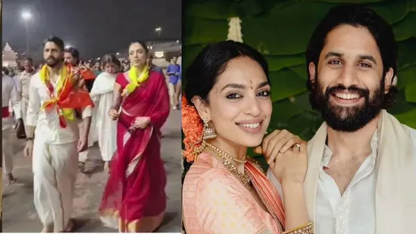 ಬಿಳಿ ಶರ್ಟ್ ಪಂಚೆಯಲ್ಲಿ ನಾಗಚೈತನ್ಯ ಕಾಣಿಸಿಕೊಂಡರೆ, ಮತ್ತೊಂದೆಡೆ, ಶೋಭಿತಾ ಸುಂದರವಾದ ಕೆಂಪು ಸೀರೆಯಲ್ಲಿ ಕಂಡರು.