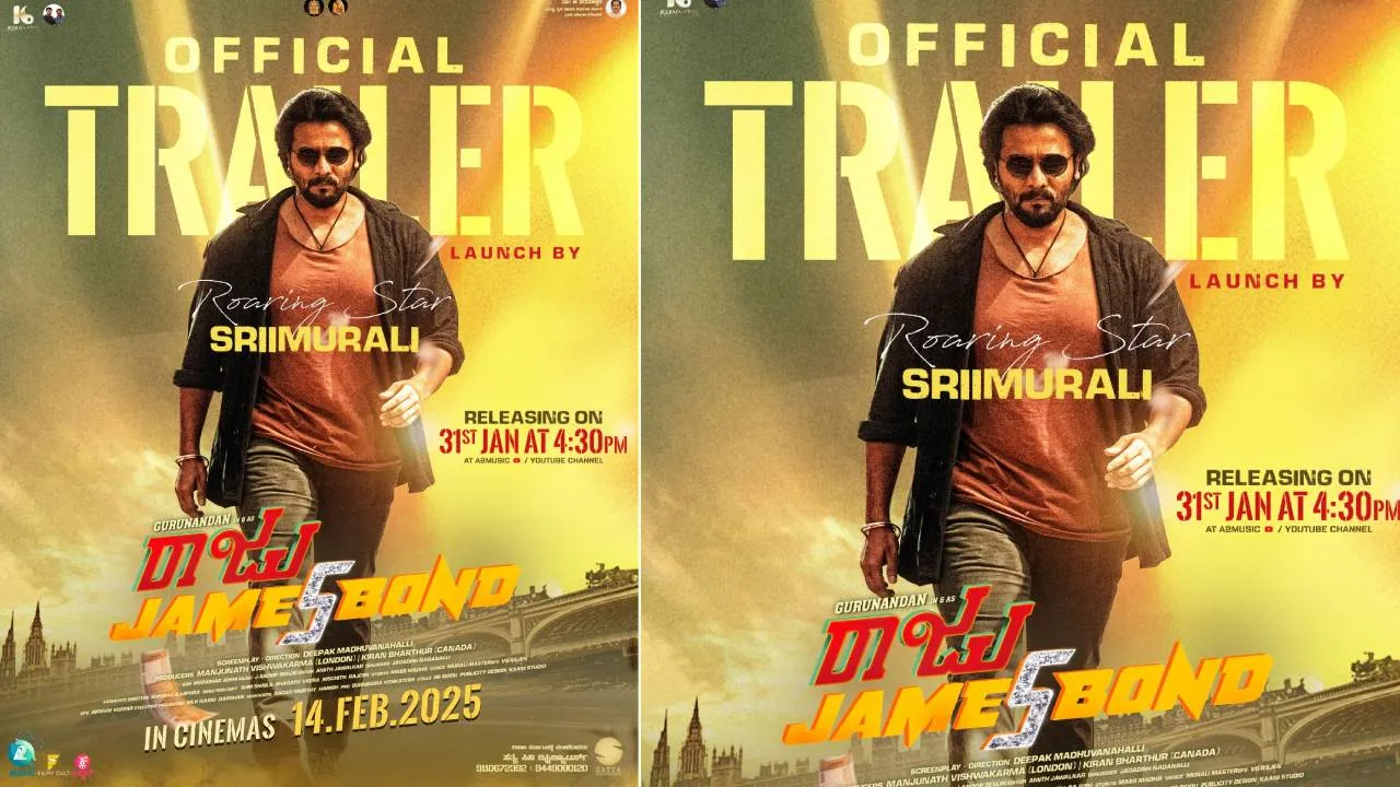 ಸ್ಯಾಂಡಲ್ವುಡ್ ಸ್ಟಾರ್ ಗುರುನಂದನ್ ನಾಯಕರಾಗಿ ನಟಿಸಿರುವ ʼರಾಜು ಜೇಮ್ಸ್ ಬಾಂಡ್ʼ ಚಿತ್ರದ ಟ್ರೈಲರ್ ಜನವರಿ 31ರಂದು ರೋರಿಂಗ್ ಸ್ಟಾರ್ ಶ್ರೀಮುರಳಿ ಅವರಿಂದ ಅನಾವರಣವಾಗಲಿದೆ. ನಿರ್ಮಾಪಕರಾದ ಮಂಜುನಾಥ್ ವಿಶ್ವಕರ್ಮ (ಲಂಡನ್) ಹಾಗೂ ಕಿರಣ್ ಭರ್ತೂರು (ಕೆನಡಾ) ಫೆಬ್ರವರಿ 14ರಂದು ಅದ್ದೂರಿಯಾಗಿ ಈ ಚಿತ್ರವನ್ನು ಬಿಡುಗಡೆ ಮಾಡುವ ಸಿದ್ದತೆಯಲ್ಲಿದ್ದಾರೆ. ಈ ಕುರಿತ ವಿವರ ಇಲ್ಲಿದೆ.