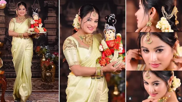 ಪಿಸ್ತಾ ಗ್ರೀನ್ ಹಣ್ಣದ ಸಾರಿಗೆ ಆರಿ ವರ್ಕ್ ಮಾಡಿದ ಬ್ಲೌಸ್ ತೊಟ್ಟು ಜೊತೆಗೆ ಲಕ್ಷ್ಮೀಯನ್ನು ಹಿಡಿದುಕೊಂಡು ಅನುಷಾ ಗೊಂಬೆಯಂತೆ ಕಂಗೊಳಿಸಿದ್ದಾರೆ. ಮತ್ತೊಂದು ವಿಶೇಷ ಎಂದರೆ ಈ ವಿಡಿಯೋ ಇವರು ಸ್ಪೆಷಲ್ ಕ್ಯಾಪ್ಶನ್ ನೀಡಿದ್ದಾರೆ. ‘ನನ್ನ ಅತ್ಯಂತ ವಿಶೇಷ ವ್ಯಕ್ತಿ ಉಡುಗೊರೆಯಾಗಿ ನೀಡಿದ ಈ ಸುಂದರವಾದ ಸೀರೆಯನ್ನು ಧರಿಸಿದ್ದೇನೆ’ ಎಂದು ಬರೆದುಕೊಂಡಿದ್ದಾರೆ. ಆದರೆ, ಆ ವಿಶೇಷ ವ್ಯಕ್ತಿ ಯಾರು ಎಂಬುದನ್ನು ಅನುಷಾ ರಿವೀಲ್ ಮಾಡಿಲ್ಲ.