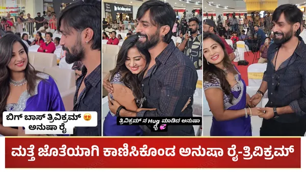 ಬಂದ ಕೂಡಲೇ ತ್ರಿವಿಕ್ರಮ್ ಅವರನ್ನು ಹಗ್ ಮಾಡಿದ ಅನುಷಾ ಇಬ್ಬರೂ ಕೆಲಹೊತ್ತು ಮಾತನಾಡಿದರು. ಇವರಿಬ್ಬರ ಈ ವಿಡಿಯೋ ಸಾಮಾಜಿಕ ಜಾಲತಾಣಗಳಲ್ಲಿ ಸಿಕ್ಕಾಪಟ್ಟೆ ಹರಿದಾಡುತ್ತಿದೆ (video credit: digital cini adda And namma kfi). ಅಂದಹಾಗೆ ತ್ರಿವಿಕ್ರಮ್-ಅನುಷಾ ಜೊತೆಯಾಗಿ ಕಾಣಿಸಿಕೊಳ್ಳುತ್ತಿರುವುದು ಇದೇ ಮೊದಲಲ್ಲ. ಕಳೆದ ವಾರವಷ್ಟೆ ತ್ರಿವಿಕ್ರಮ್ ತಮ್ಮ ಹುಟ್ಟೂರು ತುಮಕೂರು ಜಿಲ್ಲೆಯ ಗುಬ್ಬಿ ತಾಲೂಕಿನಲ್ಲಿ ರೋಡ್ ಶೋ ಮಾಡಿದ್ದರು. ಈ ಸಂದರ್ಭ ತ್ರಿವಿಕ್ರಮ್ ಜೊತೆ ಅನುಷಾ ಹಾಗೂ ಭವ್ಯಾ ಕೂಡ ಕಾಣಿಸಿಕೊಂಡಿದ್ದರು.