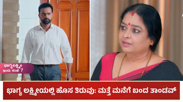 ಕಲರ್ಸ್ ಕನ್ನಡದಲ್ಲಿ ಪ್ರಸಾರವಾಗುತ್ತಿರುವ ‘ಭಾಗ್ಯಲಕ್ಷ್ಮೀ’ ಧಾರಾವಾಹಿ ಹೊಸ ತಿರುವು ಪಡೆದುಕೊಂಡು ಮುನ್ನುಗ್ಗುತ್ತಿದೆ. ಪ್ರತಿ ದಿನ ಒಂದಲ್ಲ ಒಂದು ಟ್ವಿಸ್ಟ್ನೊಂದಿಗೆ ಧಾರಾವಾಹಿ ಸಾಗುತ್ತಿದ್ದು, ವೀಕ್ಷಕರಿಗೆ ಕುತೂಹಲ ಮೂಡಿಸುತ್ತಿದೆ. ಶ್ರೇಷ್ಠಾ ಜೊತೆ ಮನೆಬಿಟ್ಟು ಹೊರಬಂದ ಎರಡೇ ದಿನಕ್ಕೆ ತಾಂಡವ್ ಮತ್ತೆ ಮನೆಗೂಡು ಸೇರಿದ್ದಾರೆ. ಆದರೆ, ಇದರಲ್ಲಿ ಹೊಸ ಪ್ಲ್ಯಾನ್ ಏನಾದರು ಇದೆಯೇ? ಅಥವಾ ತಾಂಡವ್ ನಿಜಕ್ಕೂ ಬದಲಾಗಿ ಪುನಃ ಮನೆಗೆ ಬಂದಿದ್ದಾನಾ ಎಂಬುದು ನೋಡಬೇಕಿದೆ.