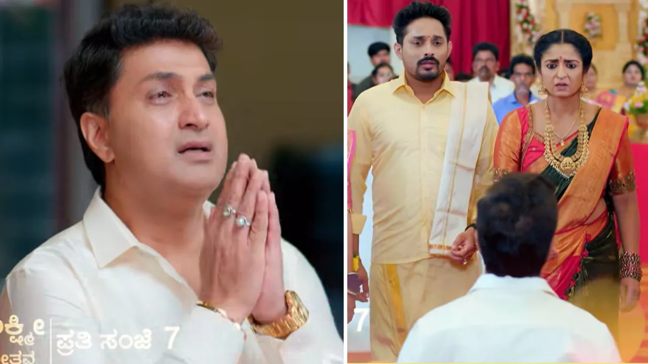ಕಲರ್ಸ್ ಕನ್ನಡದಲ್ಲಿ ಪ್ರಸಾರವಾಗುತ್ತಿರುವ ‘ಭಾಗ್ಯಲಕ್ಷ್ಮೀ’ ಧಾರಾವಾಹಿಯಲ್ಲಿ ಭಾಗ್ಯಾ ತಂಗಿ ಪೂಜಾ ಕಲ್ಯಾಣೋತ್ಸವದಲ್ಲಿ ದೊಡ್ಡ ಟ್ವಿಸ್ಟ್ ನೀಡಲಾಗಿದೆ. ಮೀನಾಕ್ಷಿ-ಕನ್ನಿಕಾ ಪ್ಲ್ಯಾನ್ ಏನು ಎಂಬುದು ಭಾಗ್ಯಾಗೆ ತಿಳಿದಿದ್ದು, ಇದರಿಂದ ಈ ಮದಿವೆಯನ್ನೇ ಭಾಗ್ಯ ಕ್ಯಾನ್ಸಲ್ ಮಾಡಿದ್ದಾಳೆ. ನನ್ನ ತಂಗಿ ಆ ಮನೆಗೆ ಸೊಸೆಯಾಗಿ ಹೋದರೆ ಅವಳು ಖುಷಿಯಾಗಿ ಇರುವುದಿಲ್ಲ ಎಂದು ಭಾಗ್ಯ ಹೇಳಿದ್ದಾಳೆ. ಮತ್ತೊಂದೆಡೆ ಭಾಗ್ಯಾ ಫ್ಯಾಮಿಲಿಯನ್ನು ಇಷ್ಟು ದಿನ ತಪ್ಪಾಗಿ ಅರ್ಥಹಿಸಿದ್ದ ಆದೀಶ್ವರ್ ಕಾಮತ್ಗೆ ಈಗ ತನ್ನ ತಪ್ಪಿನ ಅರಿವಾಗಿದೆ. ಇದಕ್ಕಾಗಿ ಭಾಗ್ಯ ಕುಟುಂಬದ ಮುಂದೆ ಮಂಡಿಯೂರಿ ಕ್ಷಮೆ ಕೇಳಿದ್ದಾನೆ.