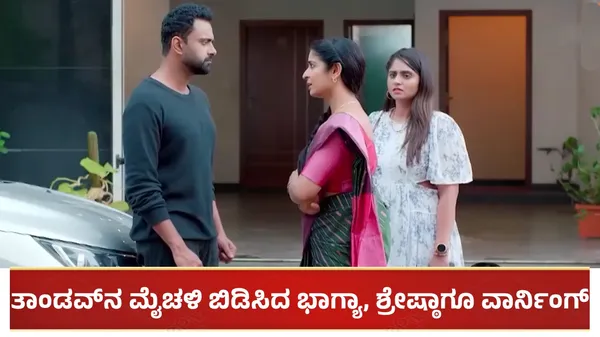 ನಂತರ ಮನೆಯಿಂದ ಹೊರಗಡೆ ಇದ್ದ ತಾಂಡವ್ಗೆ ಮತ್ತೊಮ್ಮೆ ಮುಖಾಮುಖಿ ಮೂಲಕ ಎಚ್ಚರಿಕೆ ನೀಡಿದ್ದಾಳೆ. ತಾಂಡವ್ಗೆ ವಾರ್ನ್ ಮಾಡಲು ಬಂದಾಗ ಶ್ರೇಷ್ಠಾ ಅಡ್ಡ ಬರುತ್ತಾಳೆ. ಸುಮ್ನೆ ಇರಿಟೇಟ್ ಮಾಡ್ಬೇಡ ಎಂದು ಶ್ರೇಷ್ಠಾ ಹೇಳುತ್ತಾಳೆ. ಇದರಿಂದ ಕೆರಳಿದ ಭಾಗ್ಯಾ.. ನನ್ಗೆ ಸುಮ್ನೆ ಅಡ್ಡ ಬರಬೇಡ.. ನನಗೆ ತಲೆ ಕೆಟ್ರೆ ಏನಾಗುತ್ತೆ ಅಂತ ನಿನ್ಗೆ ತುಂಬಾ ಚೆನ್ನಾಗಿ ಗೊತ್ತು ಎಂದು ಕೈಯಲ್ಲೇ ವಾರ್ನ್ ಮಾಡುತ್ತಾಳೆ.