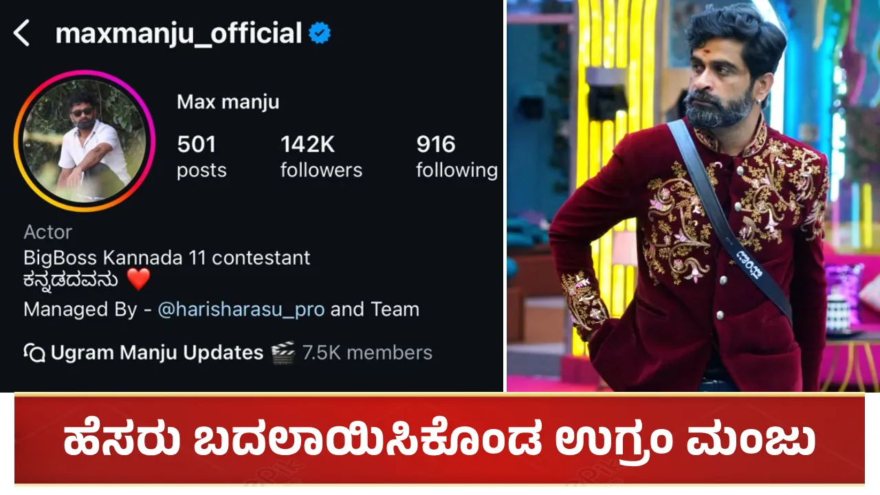 ಇದೀಗ ಉಗ್ರಂ ಮಂಜು ಅವರು ಮಾಕ್ಸ್ ಮಂಜು ಆಗಿ ತಮ್ಮ ಹೆಸರನ್ನು ಚೇಂಚ್ ಮಾಡಿಕೊಂಡಿದ್ದಾರೆ. ತಮ್ಮ ಇನ್ಸ್ಟಾಗ್ರಾಮ್ ಖಾತೆಯಲ್ಲಿ ಈ ಮೊದಲು ಉಗ್ರಂ ಮಂಜು ಅಂತ ಹೆಸರಿತ್ತು. ಆದರೆ ಇದೀಗ ಆ ಜಾಗಕ್ಕೆ ಮಾಕ್ಸ್ ಮಂಜು ಅಂತ ಹೆಸರನ್ನು ಬದಲಾಯಿಸಿಕೊಂಡಿದ್ದಾರೆ. ಬಿಗ್ ಬಾಸ್ ಮನೆಯಲ್ಲಿದ್ದಾಗ ಕಿಚ್ಚ ಸುದೀಪ್ ಅವರು ಉಗ್ರಂ ಮಂಜುಗೆ ಪ್ರತಿ ವೀಕೆಂಡ್ನಲ್ಲಿ ಮ್ಯಾಕ್ಸಿಮಮ್, ಮಾಕ್ಸ್ ಎಂಬ ಪದವನ್ನು ಮಂಜುಗೆ ಬಳಸಿ ಮಾಡುತ್ತಿದ್ದರು. ಅಲ್ಲದೇ ಅಭಿಮಾನಿಗಳು ಕೂಡ ಮಂಜು ಅವರನ್ನು ಮಾಕ್ಸ್ ಮಂಜು ಅಂತ ಕರೆಯೋದಕ್ಕೆ ಶುರು ಮಾಡಿದ್ದರು. ಹೀಗಾಗಿ ಹೆಸರನ್ನು ಚೇಂಚ್ ಮಾಡಿಕೊಂಡಿರುವ ಸಾಧ್ಯತೆ ಇದೆ. ಈ ಮೂಲಕ ಉಗ್ರಂ ಮಂಜು ಈಗ ಮ್ಯಾಕ್ಸ್ ಮಂಜು ಆಗಿ ಬದಲಾಗಿದ್ದಾರೆ ಎನ್ನಬಹುದು.