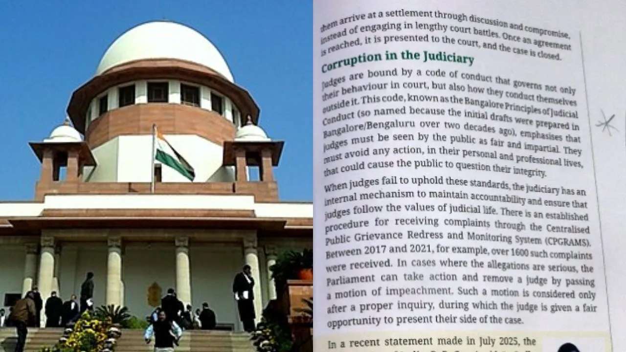8ನೇ ತರಗತಿಯ ಪುಸ್ತಕದಲ್ಲಿ 'ನ್ಯಾಯಾಂಗದಲ್ಲಿ ಭ್ರಷ್ಟಾಚಾರ'ದ ಬಗ್ಗೆ ಉಲ್ಲೇಖಿಸಲಾಗಿದ್ದು, ನ್ಯಾಯಾಂಗವನ್ನು ಟೀಕಿಸಲು ಯಾರಿಗೂ ಬಿಡುವುದಿಲ್ಲ ಎಂದು ಭಾರತದ ಮುಖ್ಯ ನ್ಯಾಯಮೂರ್ತಿ ಸೂರ್ಯ ಕಾಂತ್ ಹೇಳಿದ್ದಾರೆ. ಇದು ಸಂಸ್ಥೆಯ ಸಮಗ್ರತೆಯನ್ನು ಪ್ರಶ್ನಿಸುತ್ತದೆ. ಇದಕ್ಕೆ ಯಾರಿಗೂ ಅವಕಾಶವಿಲ್ಲ ಎಂದು ಅವರು ಹೇಳಿದ್ದಾರೆ.