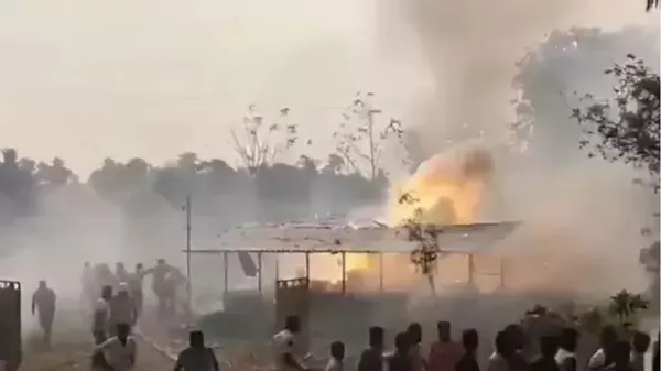 ಹಚ್ಚ ಹಸಿರಿನ ಭತ್ತದ ಗದ್ದೆಗಳ ನಡುವೆ ಭಯಾನಕ ದೃಶ್ಯವೊಂದು ಕಂಡುಬಂದಿದೆ. ಸ್ಥಳೀಯರು ಚೀಲಗಳಲ್ಲಿ ಶವಗಳನ್ನು ಸ್ಥಳಾಂತರಿಸಿದ್ದಾರೆ. ಸ್ಫೋಟದ ಸ್ಥಳದಿಂದ ಬೆಂಕಿ ಮತ್ತು ಹೊಗೆ ಹೊರಹೊಮ್ಮಿದ್ದು, ಗಾಯಾಳುಗಳನ್ನು ರಕ್ಷಿಸಲು ಆಂಬ್ಯುಲೆನ್ಸ್ ಸ್ಥಳಕ್ಕೆ ಧಾವಿಸಿದೆ.
