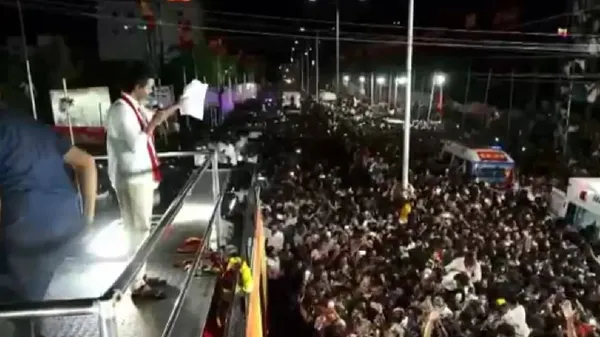 - ತಮಿಳಗ ವೆಟ್ರಿ ಕಳಗಂ (ಟಿವಿಕೆ) ಅಧ್ಯಕ್ಷರಾಗಿರುವ ವಿಜಯ್, ಶನಿವಾರ ಮಧ್ಯಾಹ್ನದ ಸುಮಾರಿಗೆ ಕರೂರ್ ತಲುಪಬೇಕಿತ್ತು, ಆದರೆ ಸುಮಾರು ಆರು ಗಂಟೆಗಳ ಕಾಲ ವಿಳಂಬವಾಗಿತ್ತು.