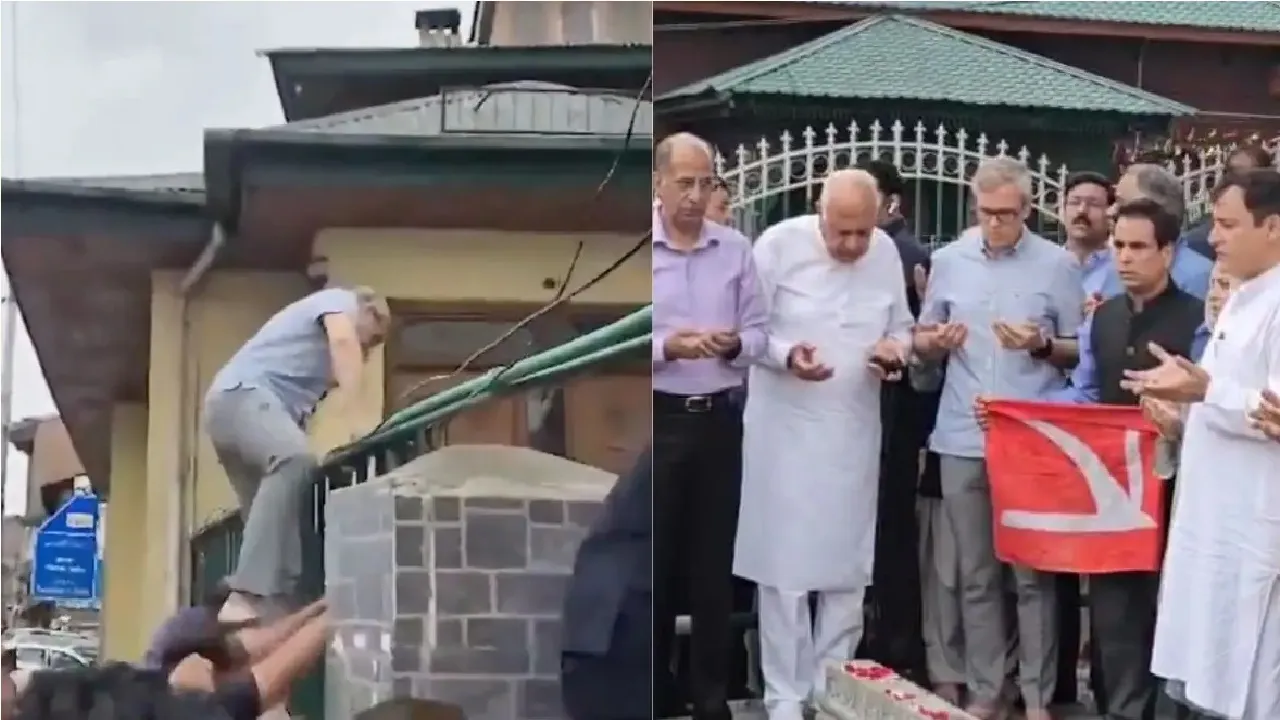 ಶ್ರೀನಗರದ ನೌಹಟ್ಟಾ ಪ್ರದೇಶದಲ್ಲಿರುವ ( Srinagar Nowhatta area) ಹುತಾತ್ಮರ ಸಮಾಧಿ ಸ್ಥಳಕ್ಕೆ (Martyrs’ Graveyard) ಹೋಗಲು ಜಮ್ಮು ಮತ್ತು ಕಾಶ್ಮೀರ ಮುಖ್ಯಮಂತ್ರಿ (Jammu and Kashmir Chief Minister) ಒಮರ್ ಅಬ್ದುಲ್ಲಾ (Omar Abdullah) ಗೇಟ್ ಹತ್ತಿದ ಘಟನೆ ಸೋಮವಾರ ಬೆಳಗ್ಗೆ ನಡೆದಿದೆ. ಈ ವೇಳೆ ಒಮರ್ ಅಬ್ದುಲ್ಲಾ ಅವರ ಜೊತೆಗೆ ನ್ಯಾಷನಲ್ ಕಾನ್ಫರೆನ್ಸ್ನ ಇತರ ನಾಯಕರು ಮತ್ತು ಕಾರ್ಯಕರ್ತರು ಕೂಡ ಗೇಟ್ ಹಾರಿ ಬಂದು ಹುತಾತ್ಮರಿಗೆ ಶ್ರದ್ಧಾಂಜಲಿ ಸಲ್ಲಿಸಿದರು.