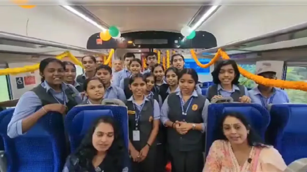 Today, a group of school students sang a famous patriotic song inside the newly inaugurated Vande Bharat train 🚆 but instead of appreciation, Kerala’s Left and Right leaders have criticized these children for simply expressing love for… pic.twitter.com/Cp3Ka2tADy