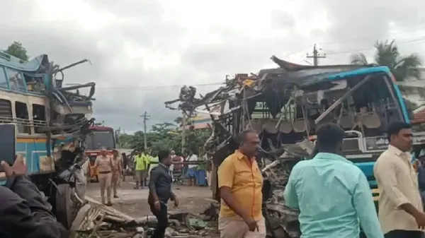 ಪೊಲೀಸರ ಪ್ರಕಾರ, ಮಧುರೈನಿಂದ ಸೆಂಕೊಟ್ಟೈಗೆ ಹೋಗುತ್ತಿದ್ದ ಖಾಸಗಿ ಬಸ್ ಮತ್ತು ತೆಂಕಾಸಿಯಿಂದ ಕೋವಿಲ್ಪಟ್ಟಿ ಕಡೆಗೆ ಹೋಗುತ್ತಿದ್ದ ಇನ್ನೊಂದು ಬಸ್ ಡಿಕ್ಕಿ ಹೊಡೆದಿವೆ. ಈ ಡಿಕ್ಕಿಯ ಪರಿಣಾಮವಾಗಿ ಎರಡೂ ವಾಹನಗಳು ಜಖಂಗೊಂಡಿದ್ದು, ಸ್ಥಳೀಯ ಅಧಿಕಾರಿಗಳು ಮತ್ತು ಅಗ್ನಿಶಾಮಕ ದಳದವರು ಬೃಹತ್ ರಕ್ಷಣಾ ಕಾರ್ಯಾಚರಣೆ ನಡೆಸಿದ್ದಾರೆ.